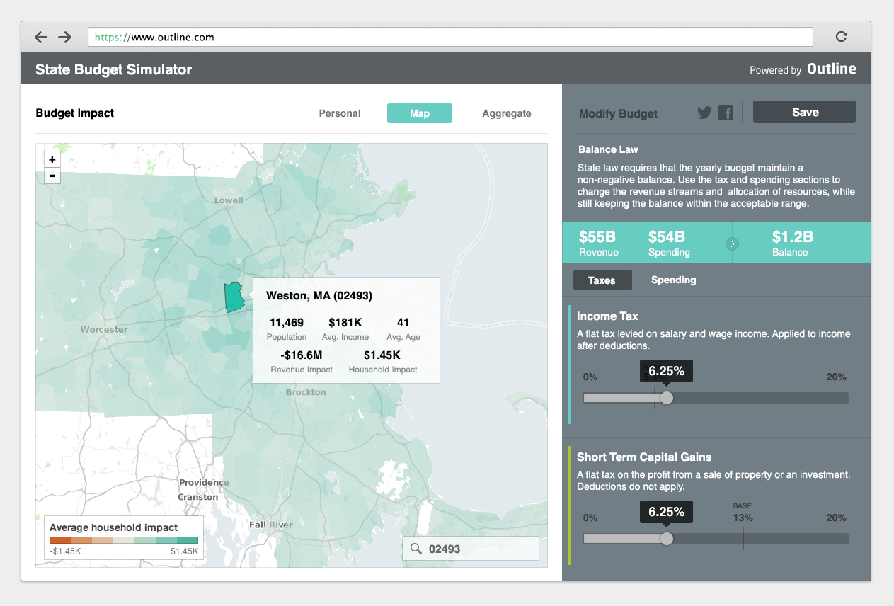 Remember when making a political decision in SimCity would have an immediate impact on your constituents’ behavior? Well, the same thing happens in real-life except until now it was always hard to measure. Enter Outline, a platform that visualizes the impact of any public policy. It was such a compelling idea that it just won a Knight Foundation award for OpenGov (resulting in a spike in our internal dashbaord).